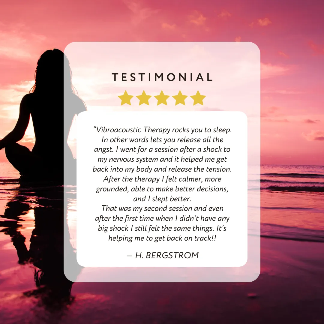 Vibroacoustic therapy is not typically covered by insurance at this time, but many people find the results—deep rest, stress relief, and a healthier nervous system—well worth the investment.