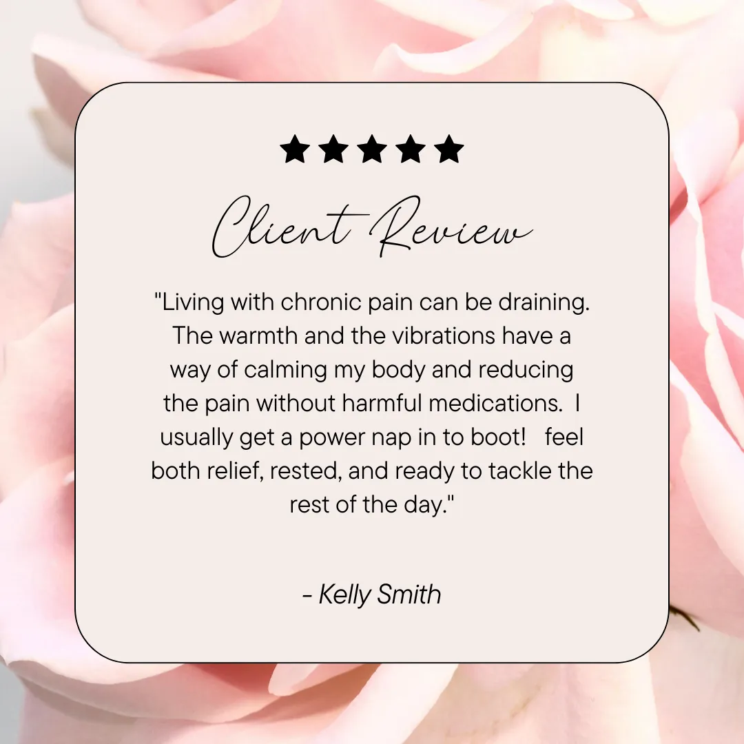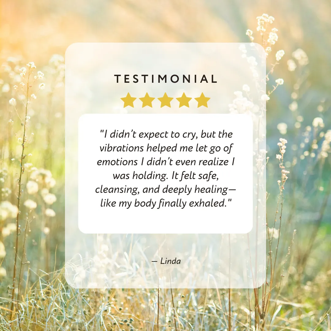 Most people describe it as deeply relaxing—like getting an internal massage. I often stack it with Healthyline mats that incorporate FIR heat, negative ion, gemstone, and PEMF therapy, so you'll feel warmth with gentle vibrations and soothing sound frequencies moving through your body, calming your nervous system and quieting the mind. Some clients drift into different states of consciousness, fall asleep, while others simply feel lighter, calmer, rejuvenated and more at ease. The mental and emotional state in which someone comes into a session and time of day can influence what each session is like and can vary from session to session.